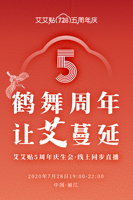 本次艾艾贴5周年庆,以“鹤舞周年,让艾蔓延”为主题。本主题寓意祝贺艾艾贴5周年庆的顺利举办,也预祝着艾艾贴事业红红火火、越来越好的美好祝福。