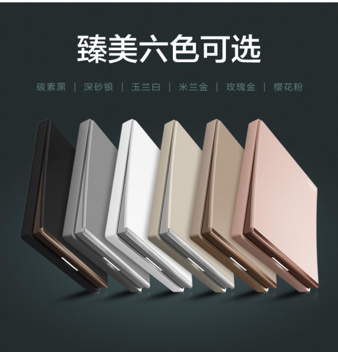 逸景碳素黑:无边框大面板的设计偏重于理性,加之黑色开关稳重的力量,给家带来安心、平静的生活氛围。