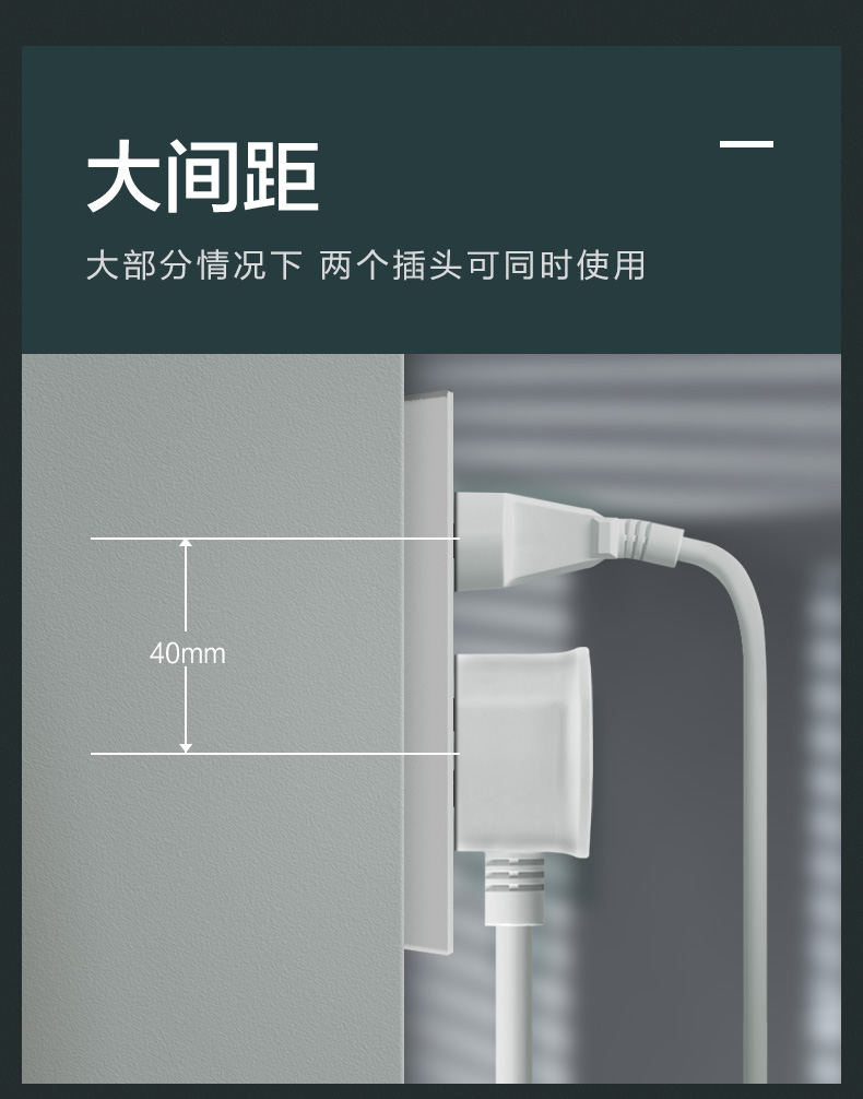 逸景插座的40mm的大间距设计,保证两个插头可以同时使用。