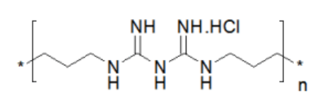 ·聚六亚甲基胍(PHMG)是一种胍,用作衍生物杀生物消毒剂,往往在其形式盐聚六亚甲基胍磷酸盐(PHMG-P)。溶液中的PHMG 对革兰氏阳性和革兰氏阴性细菌均具有杀菌和杀菌活性。该物质还具有去污剂,防腐蚀剂和絮凝剂的性能,并防止生物积垢。PHMG-P是白色粉末状固体,和所有聚胍盐一样,易溶于水。