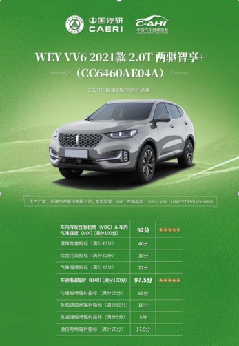最后,2021款VV6在得97.5分的EMR板块,实力也不容小觑。大家都知道,车辆电磁辐射是消费者很容易忽视且缺乏感知的危害,但2021款VV6却没对此掉以轻心,依旧保持实力在线。它选用低辐射零部件,从源头控制辐射,并合理布置位置远离驾乘区域,同时在辐射源与驾乘区域之间设置屏蔽隔离,以降低车舱内部所受到的电磁辐射强度。相较于2021款VV6的细致入微,“奥迪们”败得也不算太惨。