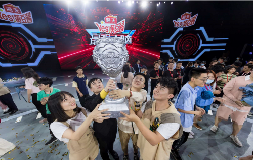 杨易与队友捧起“脑王之王”奖杯