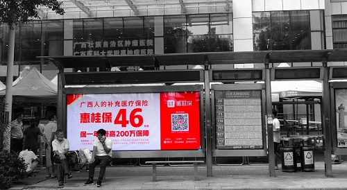 在广西各大城市的街头,和重点区、市的媒体上,“惠桂保”也以亮眼的形式,吸引市民们的注意。通过打通线上、线下,连接社区、企业、公众,融合网络、电视、广播、户外,形成了强大的宣传势能。