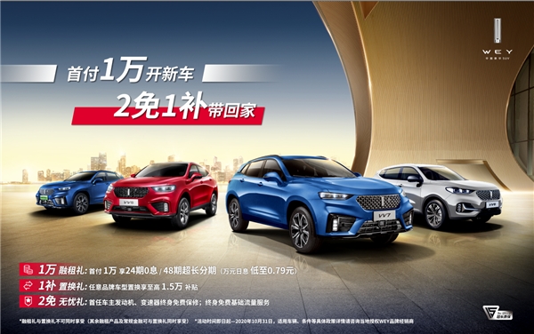 在凭借技术在高端化的道路上不断前进的同时,WEY品牌同样坚持以用户需求为导向,时时不忘为消费者着想。为了减轻用户的购车压力,自即日起,WEY品牌还推出了超值礼遇,车主选择WEY品牌旗下VV5、VV6、VV7系列车型,可享受1万元首付、24期0息的“1万融租礼”、至高1.5万元任意品牌车型置换补贴的“1补置换礼”,以及首任车主发动机、变速器终身免费保修、终身免费基础流量服务的“2免无忧礼”。此举无疑是WEY品牌对用户经营的一种升级,在惠及用户的同时,更是彰显了“为人民服务”的宗旨,简直就是教科书级别的圈粉。