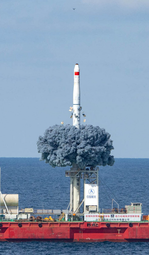 北京时间2020年9月15日9点23分,由酷客白冠名的长征十一号运载火箭海射遥二(CZ-11 HY2)在黄海海域发射成功。此次任务是长十一火箭连续10次高精度入轨、连续10次箭上质量零问题、连续10次零窗口准时发射,是长十一火箭执行的第二次海上发射任务,也是第一次海上商业化应用发射。