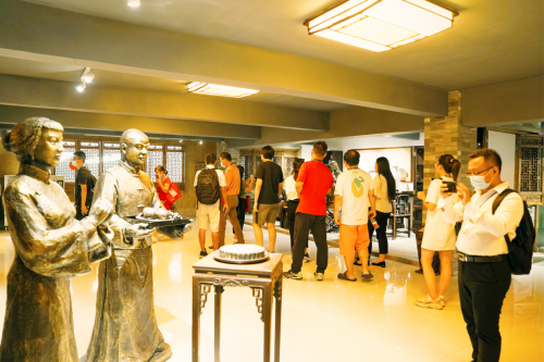 赏月会末,广东金九饼业有限公司代表带领大家参观金九饼业吴川生产基地月饼生产线,月饼制作车间约3000人同时工作,拌馅、制皮、包饼、打饼所有工序均采用传统手工制作。烘烤、包装和检测均采用国际最先进的设备,目的保证产品的质量和卫生安全。配备9条自动烘烤隧道炉,现场感受金九月饼特色传统手工制作工艺和现代化设备的完美结合。