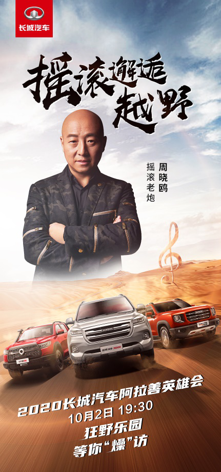 当摇滚邂逅越野,这种场面会嗨到什么样?10月2日,长城汽车狂野之夜燃动来袭,周晓鸥将以摇滚老炮之姿激情献唱,那些经典曲目将被再次演绎,用躁动、亢奋的音乐燃动整个大漠。最硬的实力,最躁的现场、最夯的乐队,摇滚与越野,天生一对,都能唤醒你血液中的自由因子。