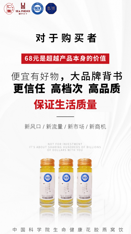 尽管花胶燕窝近两年受到年轻消费者认可,并快速增长,但这类产品不能总是高高在上,否则产业规模不可能持续扩大,所以必须实现大众化消费,降低价格,产业规模才会不断扩大,企业才能得以持续发展。为此,由中科院研发配比,中国科学院生命健康产业联盟授权,杭州仁衡科技有限公司运营的的尚好燕花胶燕窝饮问世,填补市场空白的同时,开辟全新的新时代即食花胶燕窝饮市场,一瓶70g,固体含量在50%的花胶燕窝饮,售价仅29.8元,真正意义上实现“人人都喝起”,恪守中科院惠及于民的发展宗旨。