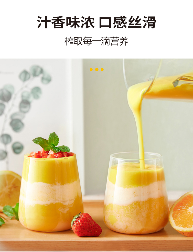除了功能比较齐全外,在外观设计与选材上也是十分注重的。整体颜色清新亮丽,小巧身材,厨房客厅随处容身。杯体采用高硼硅玻璃杯体,健康且容易清洗。一键自清洗,告别让你头痛的清洗烦恼,给忙碌的生活偷个懒。聚冷聚热不易开裂,安全没有异味,宝宝辅食也能放心使用。内外兼修,用一次就被圈粉,可视化窗口,工作状态清晰可见,绝对是一场视觉与味觉盛宴。