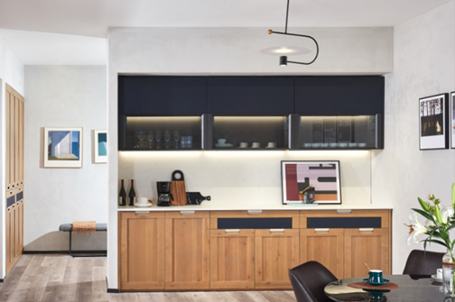 2020年匠心推出了一系列高端集成家居新品。现代简约风格力作礼居Ⅱ,以极简的形式呈现整体风格,灰色烤漆面板化奢入俭,为全屋营造高级感。采用嵌入式隐形拉手工艺,外观更简洁,带来简单而平和的生活方式。在优雅的餐厅空间内,餐边柜采用一柜多用的设计,承担了酒柜和隔断柜的双角色,既是客厅与餐厅的边界,也是一家人情感交流的桥梁。