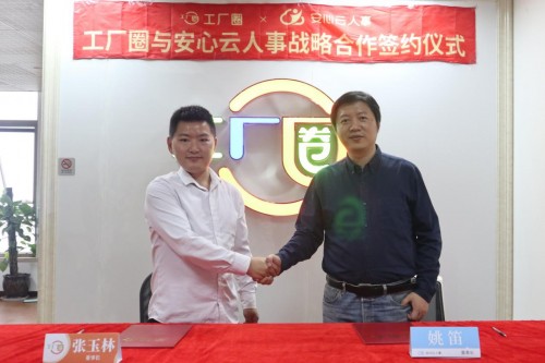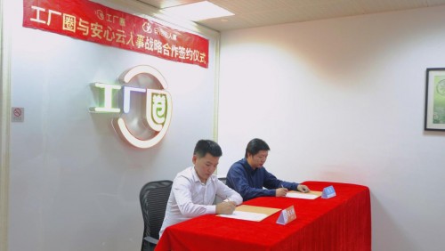 10月21日下午,工厂圈与安心云人事战略合作签约协议在昆山举行,成功签署《战略合作协议》,充分发挥双方的资源和技术优势,在发薪和蓝领人力数字化服务等领域达成全面深入合作。