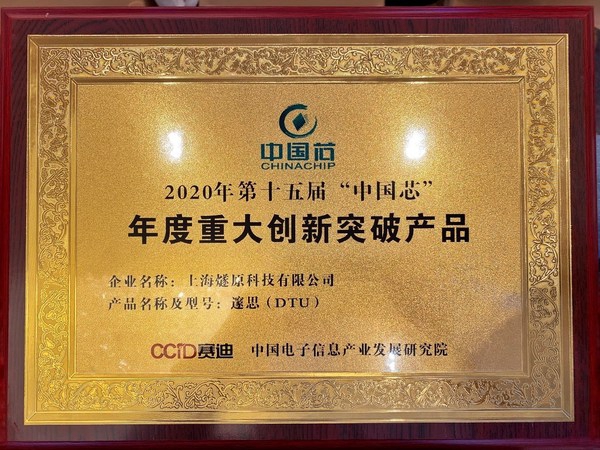 一年一度的“中国芯”活动是国内集成电路领域权威的创新成果集中展示平台和业界交流盛会,旨在打造中国集成电路行业广泛认可的知名品牌,促进产业持续向前发展。本届“中国芯”征集活动共收到来自165家企业、累计246款芯片产品的申报,与往年相比,今年的参选产品数量更多,应用领域更广泛,且技术含量更高。在今天的大会上揭晓了第十五届“中国芯”优秀产品征集结果,邃思DTU被授予“年度重大创新突破产品”奖。该奖项用来表彰在本年度取得重大创新突破、填补国产空白、具有显著经济效益的芯片产品,代表了我国集成电路产业发展的先进水平。