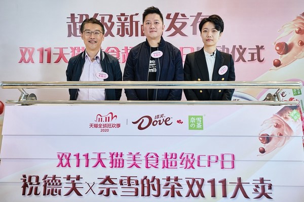 10月29日,德芙携手奈雪合作开启暨超级新品发布&天猫美食双11超级CP日线下活动,邀请到阿里巴巴副总裁&天猫快速消费品事业+服饰风尚事业部总裁古迈、玛氏箭牌中国区总裁麦伟坚、奈雪CMO 刘彦利等高层共同见证德芙X奈雪的天猫美食超级CP日跨界新品发布。