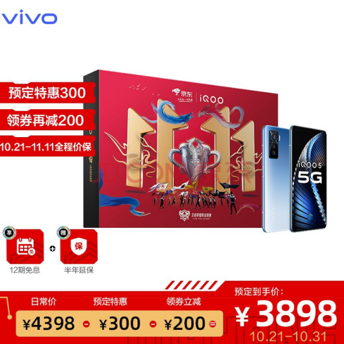 近日,iQOO在vivo官方商城和京东平台上线了iQOOXKPL2020联名礼盒,礼盒中包含新一代KPL官方比赛用机iQOO 5(12GB+128GB星溯)、XE710耳机、KPL特别定制的手机壳及工卡牌,为电竞爱好者带来更具战斗感的电竞体验。该款礼盒预售日期为10月21日至11月1日,预售期间消费者可享受定金100元抵扣400元,1号付尾款还可领200元平台优惠券,以到手价3898元买到原价4398元的iQOOXKPL2020联名礼盒。