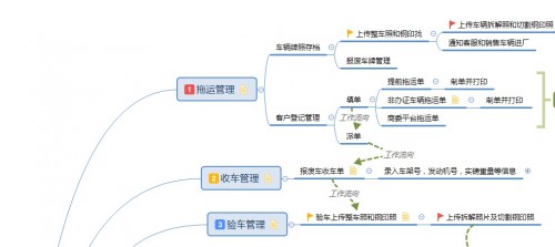 上图为公司对车辆拖运管理、收车管理和验车管理的思维导图,2.1收车管理: