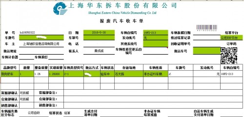 《报废车收车单》