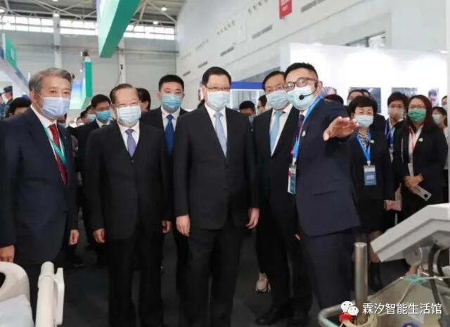 本次健博会健康共同体及每个场馆门口的近百台智能机器人均由湖北人工智能明星企业——武汉霖汐科技有限公司(简称:霖汐科技)提供。应勇书记、王晓东省长等领导及与会嘉宾共同在健康共同体处驻足,并由讲解人员详细介绍了本次大会的机器人科技元素,展示了湖北省在科技抗疫过程中的部分成果。