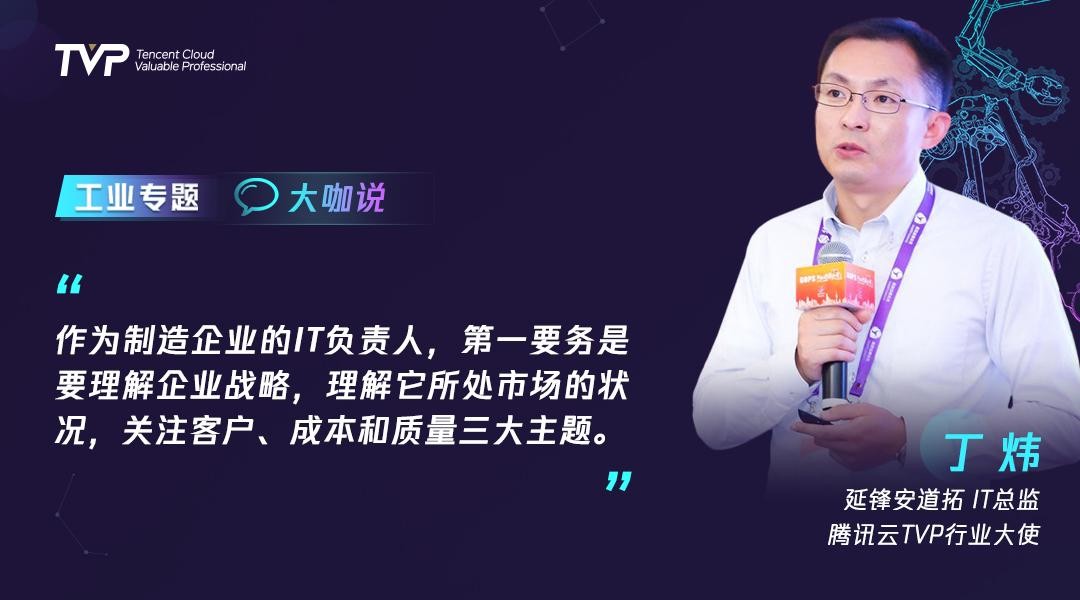 丁炜老师认为,作为制造企业的IT部门,在历史上很多时候都是一个企业的成本中心,并未产生真正的价值。而随着工业互联网时代的到来,IT部门有了更大的能力可以为生产部门赋能。但在此之前,作为制造企业的IT负责人,第一要务是要“理解企业战略”,理解公司所处市场的现状。并在客户、成本、质量三个要素间做到综合考量与平衡决策。