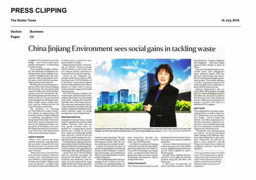 近日,中国锦江环境控股有限公司(以下简称“锦江环境”)董事长王元珞接受了《海峡时报》、《新加坡商业时报》专访,二者分别以《中国锦江环境在垃圾处理方面取得社会效益》、《中国锦江环境解决垃圾问题》为题报道了锦江环境的专业度与米兰·网站。