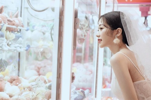 轻薄既是夏天酷热气候的需要,又是新娘展现温柔气质的衬托。最为常见的是真丝与氨纶。不论何种面料,颜色和款式的选择最为重要,要根据自己的肤色和身型搭配。