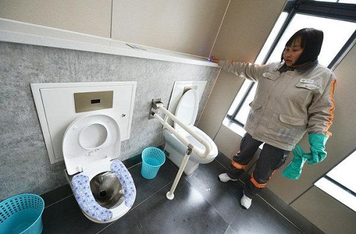 在朝阳区黑庄户乡郎辛庄村,有一座新建成的运用高铁真空排导技术改建的乡村公厕。在这个厕所内,使用的蹲便器、坐便器全部采用真空收集装置,利用真空负压原理,整个过程和设计标准与高铁卫生间完全一致。