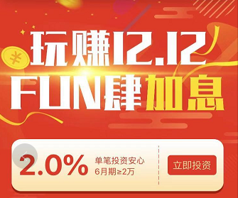 近期,平台推出“玩赚12.12,Fun肆加息”活动,本次活动针对2018年12月18日22:00前注册的花友,有兴趣的朋友可以去花生投官网或花生投APP了解。