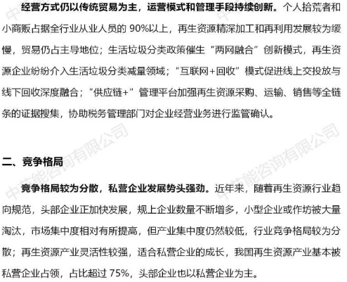 北极星固废网获悉,近日,中节能咨询有限公司发布了回收利用行业研究(简版),从行业现状、竞争格局、发展趋势和风险提示四方面入手,对再生资源行业进行了分析,详情如下: