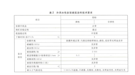 外用水性多彩建筑涂料技术要求: