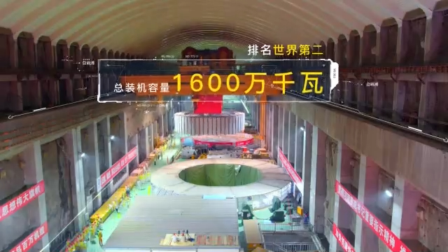 白鹤滩水电站总装机容量1600万千瓦,居世界第二,仅次于三峡工程。单机容量100万千瓦,位居世界第一。预计2022年7月可实现16台机组全部投产发电。届时一天的发电量就可满足50万人一年的生活用电。