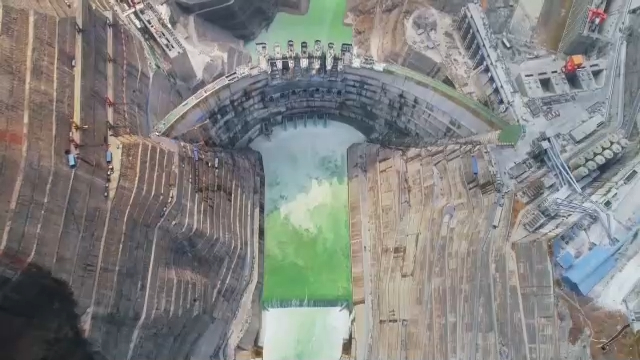 总台央视记者 张伟:在白鹤滩工地现场,35摄氏度以上的高温是常态。我们计算了一下,白鹤滩大坝浇筑的混凝土从拌合楼出来,通过自卸车开到供料平台,然后通过缆车将混凝土运送到大坝的浇筑现场,大约需要7分钟,在不断变化的环境和高温天气下,到达现场的混凝土温度也不会超过8摄氏度。