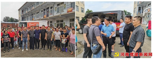 当天碰巧遇到大冶镇党委书记王志斌同志和大冶镇财政所长也去看望垌头村受灾群众,当王志斌书记看到郑州爱心企业来捐赠受灾群众急需物资非常感动,并且和董军敏书记亲切交谈交流了抗洪救灾当前物资供应情况,王志斌书记当即表示代表受灾群众父老乡亲们对郑州爱心企业家同志们表示最真诚感谢合唱了《没有共产党就没有新中国》这首歌并与我们和受灾群众合影留念,随后董军敏书记又带领一些爱心企业人士和公司全体党员现场查看灾情,看到现场灾情场面让公司全体党员和爱心企业家非常震撼,房屋多处倒塌,现场上游还在急需泄洪,据村委人员说这次他们受灾严重,估价损失达五千多万,看到这样情况以后董军敏书记当场表示回郑州继续组织郑州爱心企业和爱心人士会继续向灾区捐款捐物,不会让灾区人民失望,会一直把爱心传递下去,为家乡人民加油,为河南加油,为郑州加油!