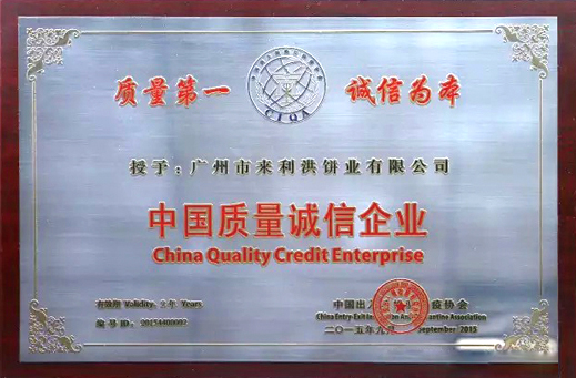 中国质量诚信企业证书