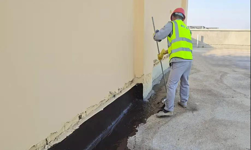 项目地处雨季持续时间较长的广西省,为确保在阴雨连绵天气或是台风天来袭时厂房仍能保持最佳的运行状态,保证生产ABS的精密仪器不受漏水、渗水等情况威胁。经三棵树防水专业团队与客户协商沟通后,决定使用SGW721绿意净味水性沥青防水涂料+塑性体(APP)改性沥青防水卷材的防水涂卷复合系统,助力整体项目的防水建设,为厂房筑起隐形“绿色长城”。