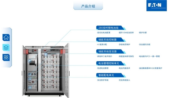 此次加入伊顿储能产品矩阵的 200kWh xStorage 户外储能系统,采用模块化结构设计,具有准化生产、安全高效、灵活部署等特点,将帮助产业园区深度融合“光储充”一体化能源系统模式,加速实现零碳发展。