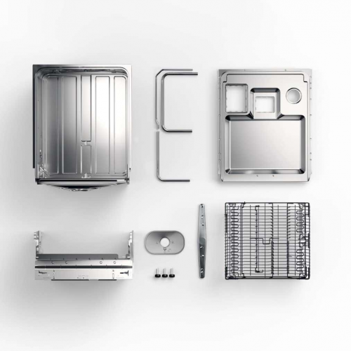 由于洗碗机的内部元件相比其他部件更易受到腐蚀,因此 DW60 洗碗机内部元件采用了 18.9 医用级不锈钢,使用寿命更长,还可以承受更高压力的清洗。同时,门板和控制门板一体无缝链接,均统一采用不锈钢材质,按键也均由纯金属制成。大量不锈钢材质的运用,提高耐用性的同时,也增加了产品本身的光泽质感。