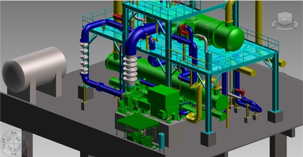 “我们采用了创新的有机朗肯循环(ORC)技术,以回收和再利用聚酯主装置工艺塔产生的102℃饱和聚酯蒸汽,”项目有关工作人员详细介绍,“项目中的ORC发电机组采用了五氟丙烷作为工质。系统配置包括蒸发器、两级预热器、回热器和冷凝器,可高效回收和再利用聚酯蒸汽的热量。工质在加热后气化,然后送入高效径向离心透平机做功,进而拖动发电机转动并发电,最后实现能量的转换。完成发电后,饱和聚酯蒸汽被冷却,凝液约50℃后返回聚酯主装置进行循环利用。”