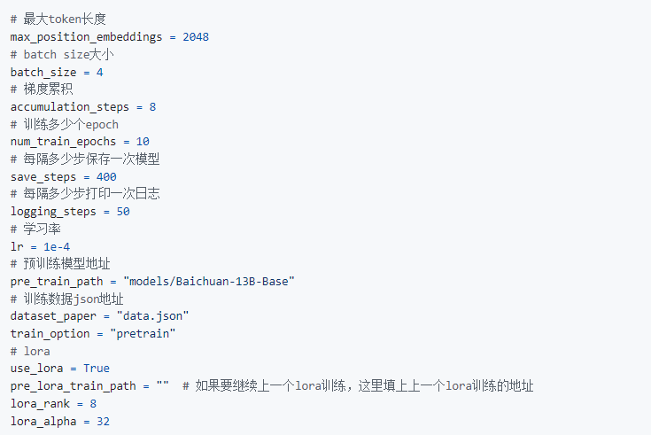 (2)预训练配置: