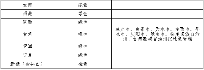 2020年风电投资监测预警结果如下:新疆(含兵团)、甘肃、蒙西为橙色区域;山西北部忻州市、朔州市、大同市,河北省张家口市和承德市、内蒙古赤峰市按照橙色预警管理;甘肃河东地区按照绿色区域管理;其他省(区、市)和地区为绿色区域,具体见附件1。