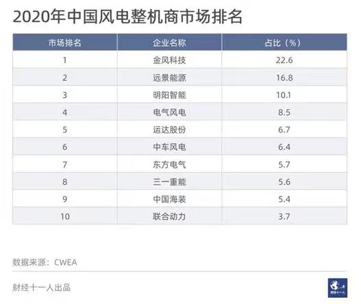 但直到2019年,三一重能才首次排进中国风机制造前十名。2020年,其排名提升至第八位。2021年,业内预计其排名将进一步提升两个位次左右。